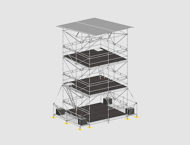 Layher Allround Scaffolding is the proven basis for our event systems. The highest level of investment security and decades of subsequent purchase options are guaranteed.